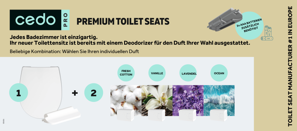 Unser innovativer Deodorizer versprüht automatisch einen angenehmen Duft in Ihrem Badezimmer oder Ihrer Toilette. Er lässt sich leicht nachrüsten, wird mit Batterien betrieben und passt zu vielen unserer Modelle.